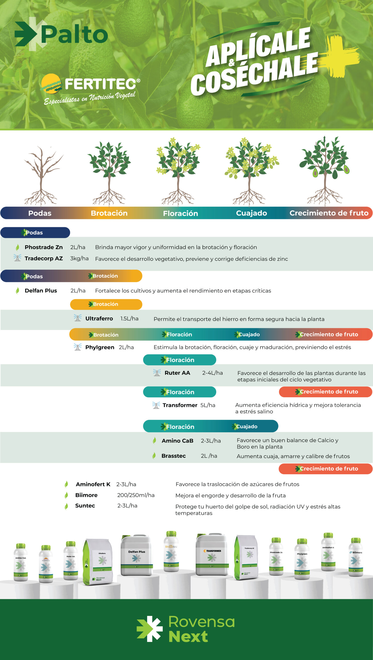 El portafolio de Rovensa Next Perú, distribuido por Fertitec Perú, diseñado para acompañar al palto en todas sus fases y maximizar el rendimiento.